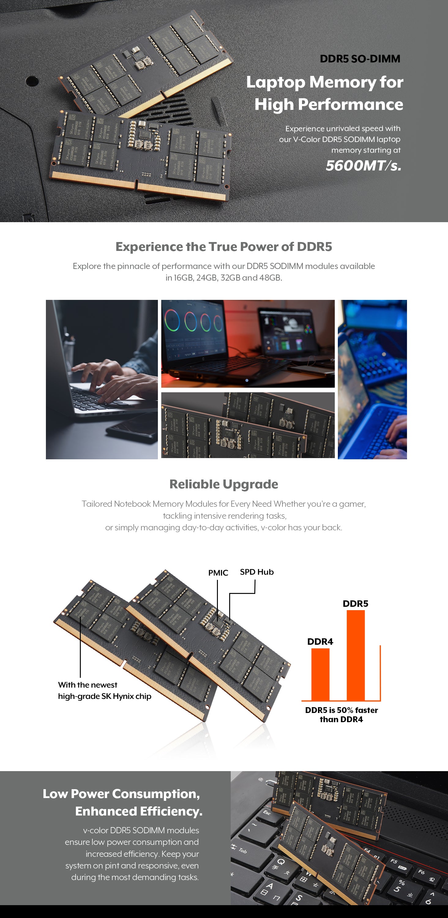 Cumplimiento perfecto de las especificaciones de bajo voltaje de trabajo JEDEC 1.2V.