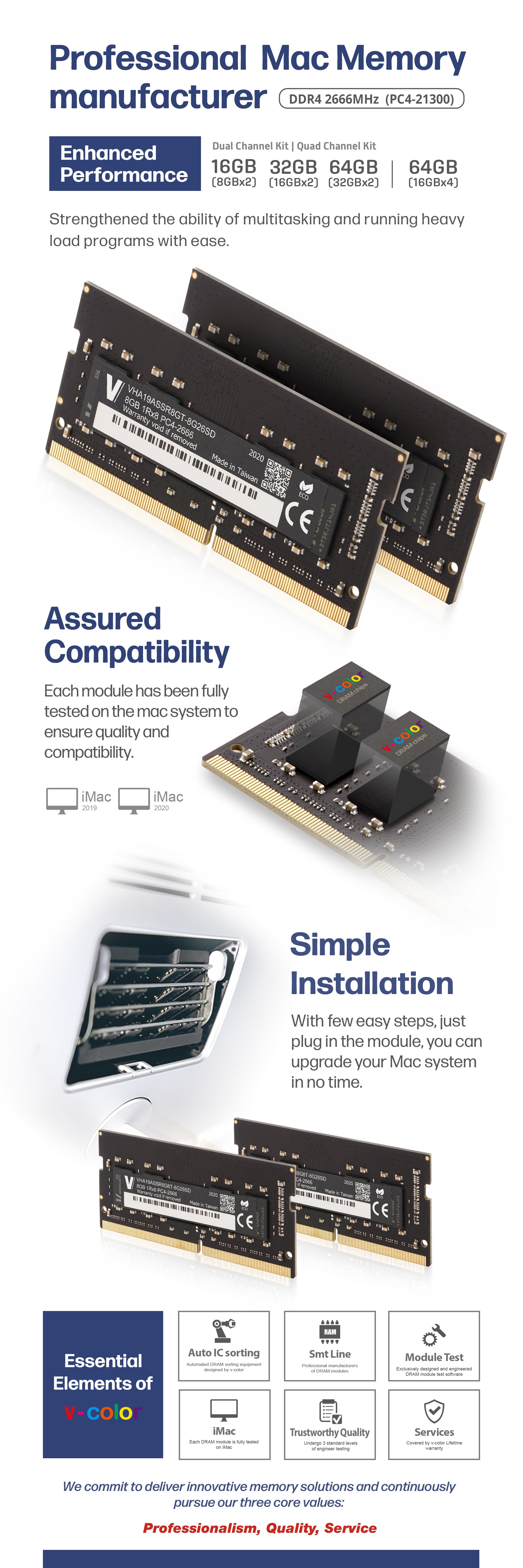 厳格に監査された最高品質の 10 層 PCB を備えた DRAM チップ。各 IC は、v-color が設計した自動選別装置を使用して厳密にテストされます。