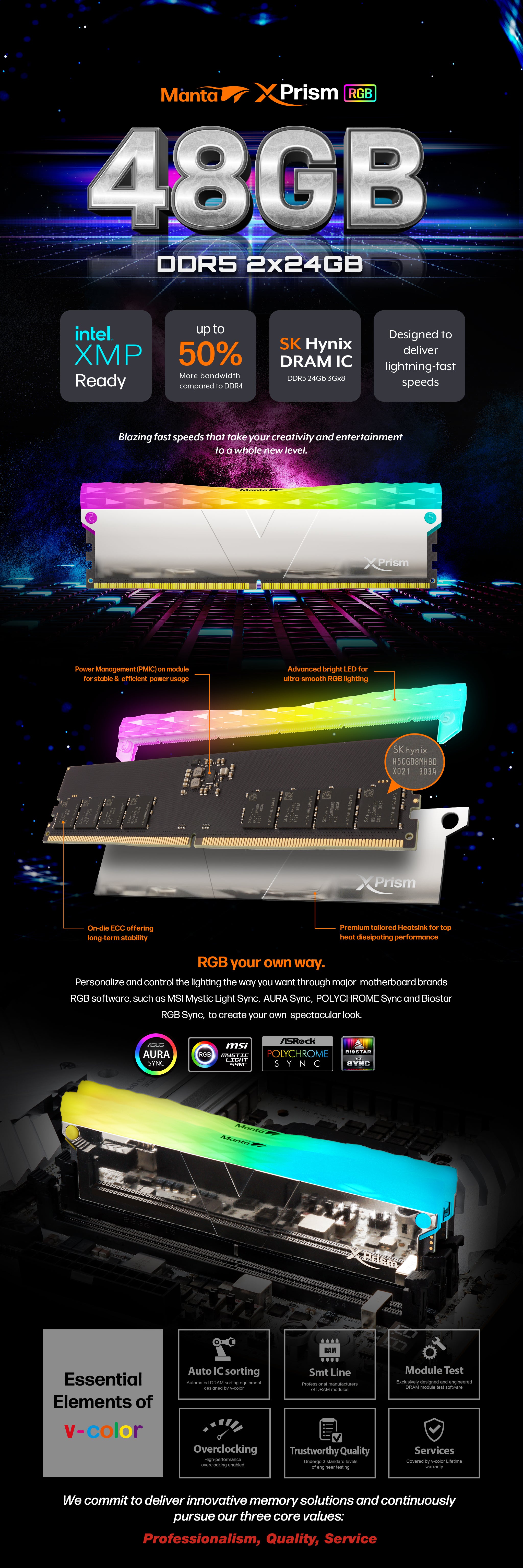 DDR5 | [Manta] XPrism RGB | 48GB (24GBx2) | INTEL XMP | ゲーム用メモリ